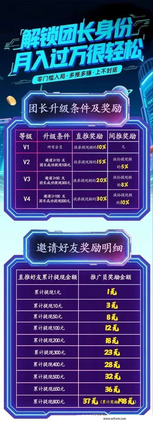 推广团队可获得高额扶持,首次预付88.88元至888.88元以上,后续推广收益五五分成。自玩用户也有金币扶持,首次预付18.88元至188.88元以上,每次提现10元可获1.66元补贴。具体扶持金额需咨询平台确认,且禁止使用科技手段。