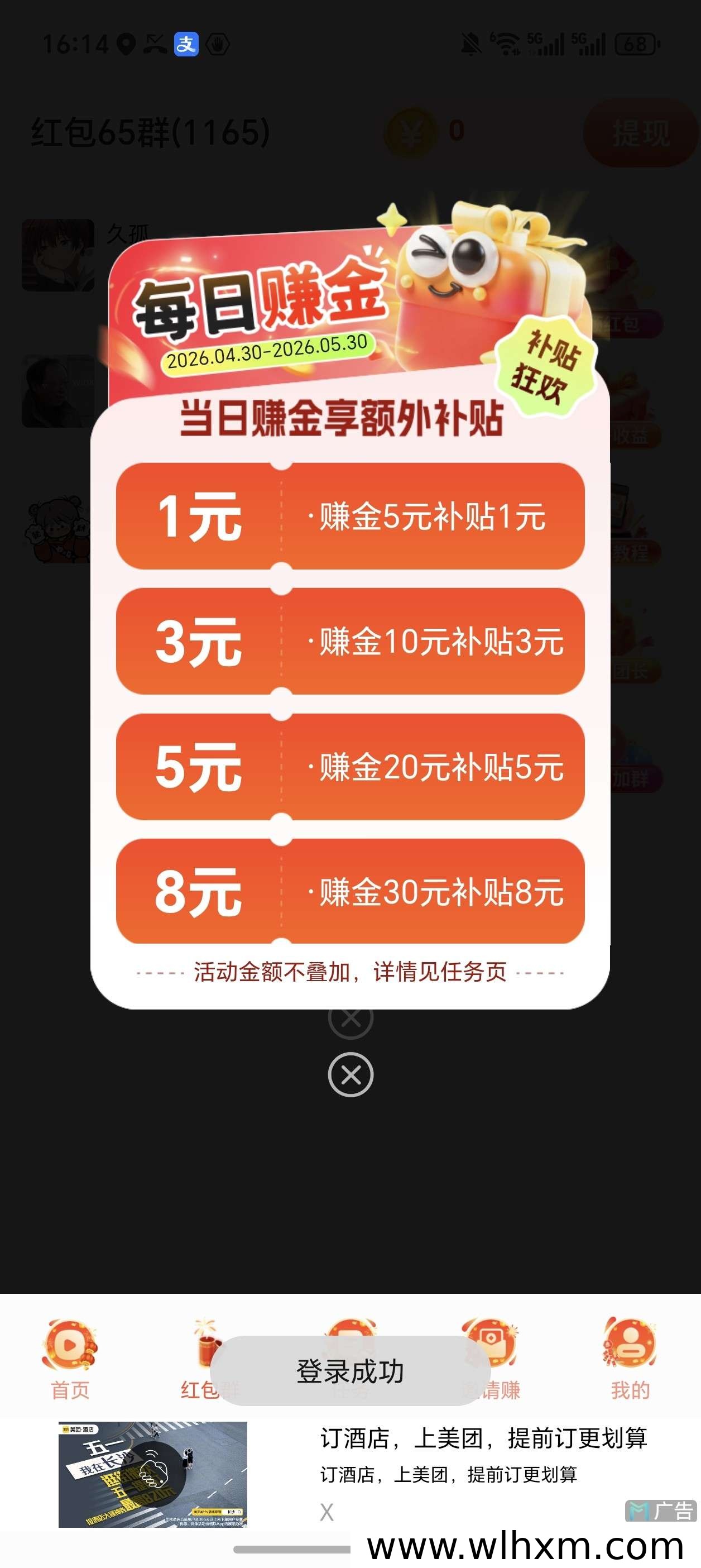 除了核心的广告收益,彩虹魔盒还设有红包群、任务和签到等福利活动,用户可以通过完成日常任务获取额外奖励。此外,平台还推出了5补1和10补3的补贴机制,进一步提升了用户的收益预期,让零撸体验更加丰富。